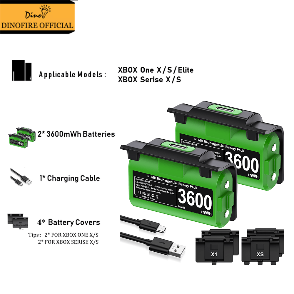 2*3600 mWh Rechargable Batteries For XBOX ONE S/X/XBOX SERISE S/X Controller Battery with 4PCS Battery Cover & Charging Cable