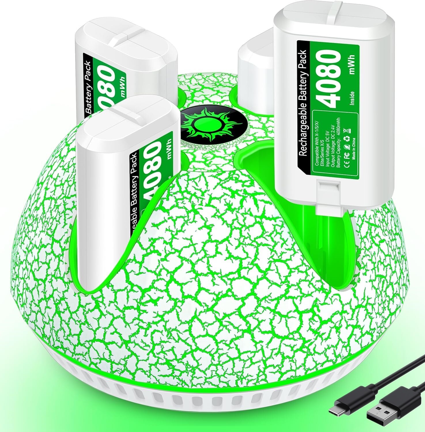 ⚡Durable Design: Equipped with four 4080mWh batteries, this xbox rechargeable battery pack stand ensures long-lasting power for your gaming sessions. Each battery can be fully charged in 4 hours and provides up to 12 hours of continuous use.The high-quality batteries can withstand approximately 2000 charge cycles, ensuring reliable performance over an extended period