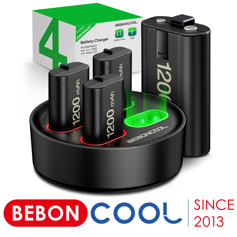 【4x1200 mAh Rechargeable Battery Pack】The charger with 4 packbattery pack for xbox one controller work with Xbox Series X/ Xbox series S/Xbox One/ Xbox One X/Xbox One S wireless Controller. You get 4-piece xbox rechargeable battery pack and there's always 3 fully charged xbox battery standby on xbox charger station. You won’t get the low battery warning while playing