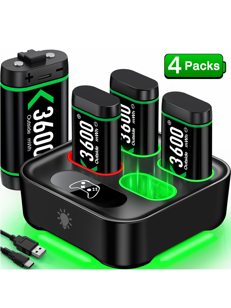 For Rechargeable Xbox One Controller Battery Pack : These battery packs for xbox are compatible with Xbox One/Xbox Series X|S Xbox One S/Xbox One X/Xbox One Elite controllers, these xbox one rechargeable battery packs is also compatible with Xbox Series X|S controllers. The charger battery pack for xbox one controller is a must-have accessory for Xbox enthusiasts, it can be placed easily anywhere with its USB cable and charger,4 rechargeable batteries with charger for your Xbox