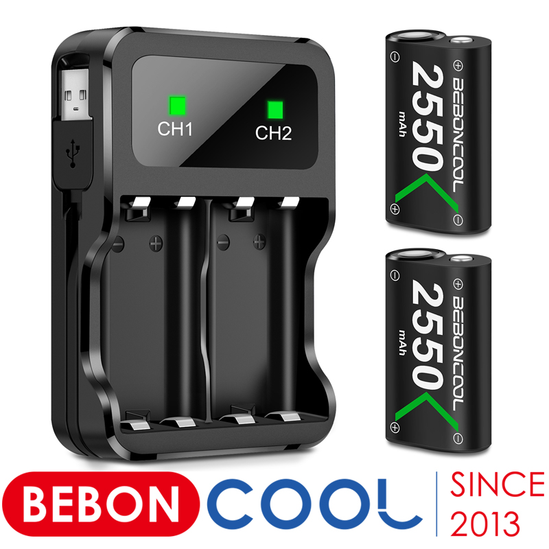 BEBONCOOL 2x2550mAh Rechargeable Battery Pack For Xbox Series X/S/Xbox One S/X Wireless Gamepad + USB/Type-C Battery Charger Kit