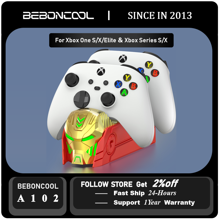 【Cool Design】With its Robot helmet-inspired aesthetic, immerse yourself in the world of superheroes as you recharge your controllers and prepare for epic gaming battles ahead. The xbox one controller charging dock features cool LED ambient light. The touch button allows you to control the LED light, with mode of ambient light available: red-color breath light when charging, solid green light when fully charged and LED off mode