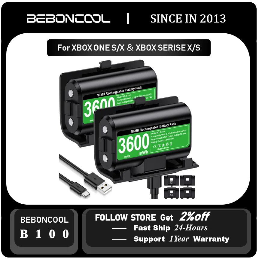BEBONCOOL B100 2*3600 mWh Rechargable Batteries Pack For XBOX Serise S/X and XBOX ONE S/X/Elite XBOX Battery With Charging Cable