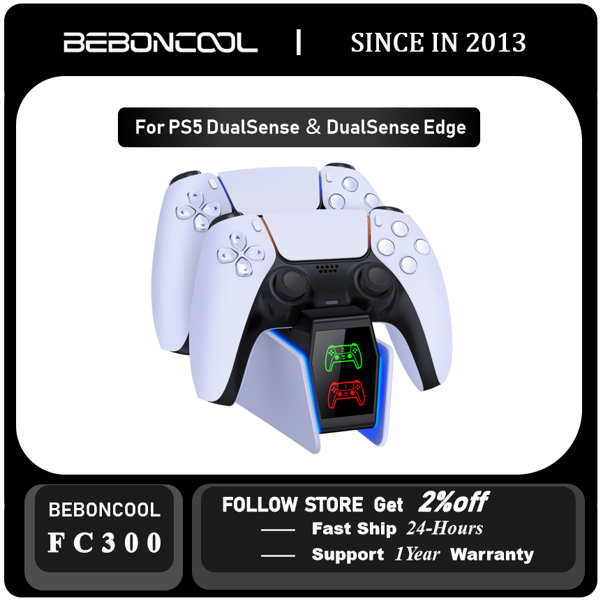 BEBONCOOL FC300 RGB Dual Fast Charger For PS5 Controller LED Indicator Charging Stand Charging Station FOR PlayStation 5