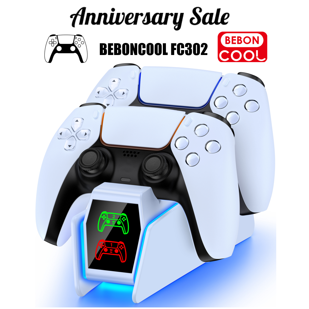 BEBONCOOL FC302 RGB Controller Charging Station For PlayStation 5 Dual Fast Charger LED Charging Stand For PS5 Dualsense Gamepad