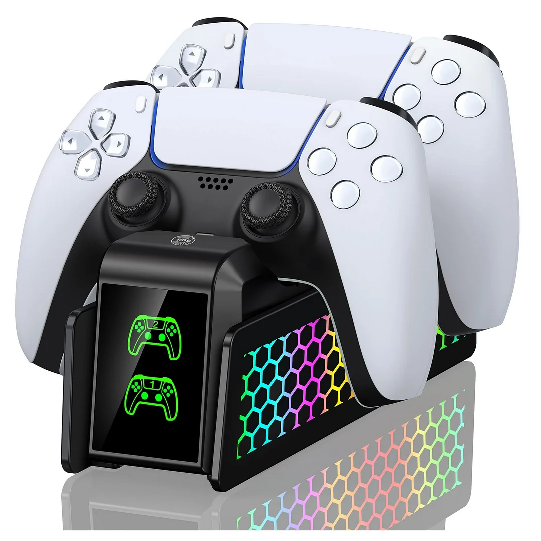 This PS5 controller charger station is specifically designed for the PlayStation 5 controllers, capable of fully charging your two PS5 DualSense controllers in just 3 hours. Simply place your controllers on the charging dock and watch them quickly come back to life,This PS5 charger is compact and lightweight, doubling as a storage solution for your controllers, helping to keep your gaming room tidy and organized. The BEBONCOOL PS5 Controller Charging Station is your ideal solution! It is meticulously designed for the official PS5 controller.