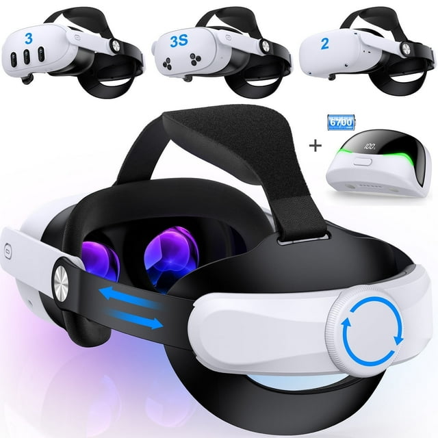 Beboncool VR Head Strap with 6700mAh Battery for Meta2/3/3S - Adjustable, Ergonomic Design & Dust Cloth