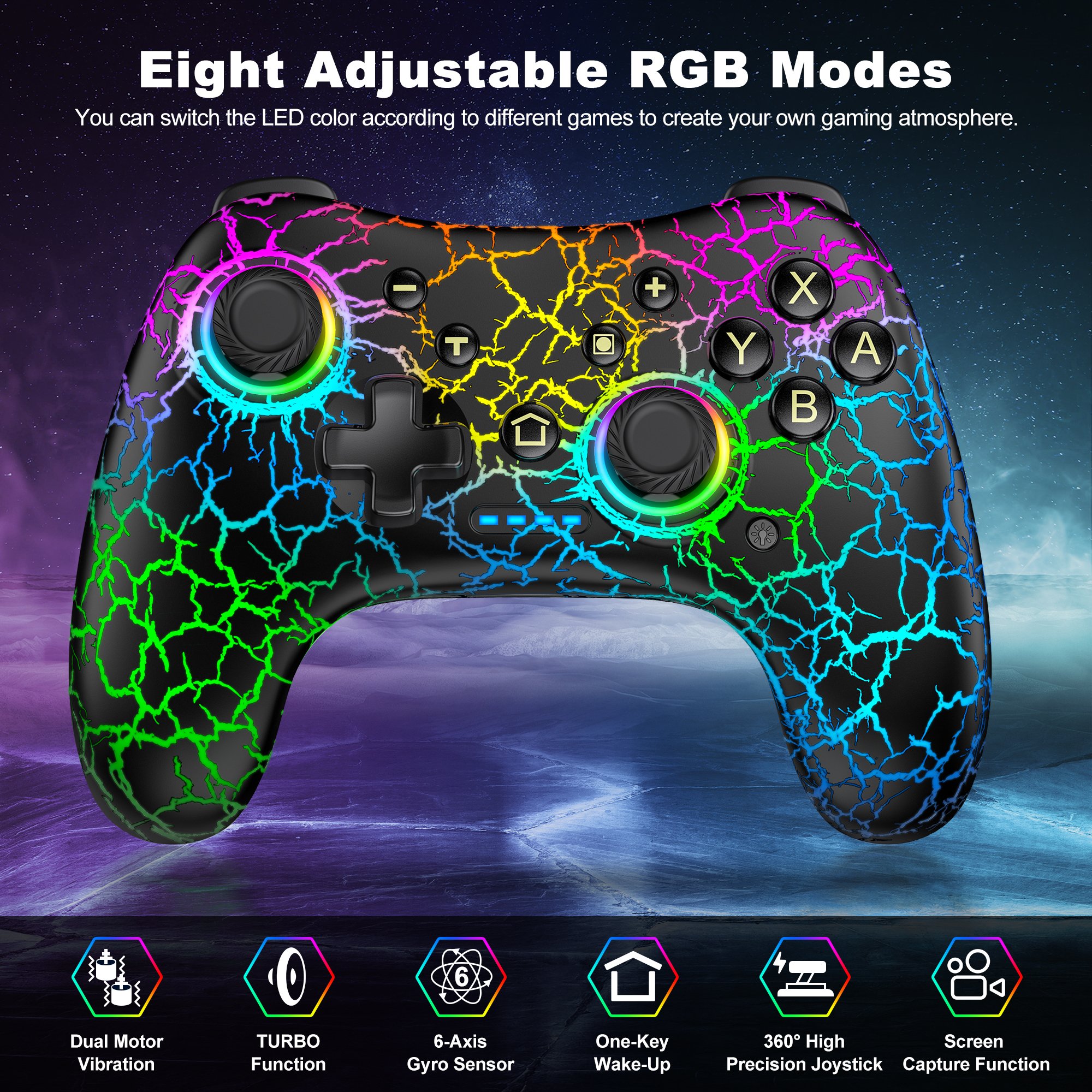 Beboncool Wireless Switch Pro Controller for Nintendo Switch/Lite/OLED /PC/IOS/Android,Crack Black