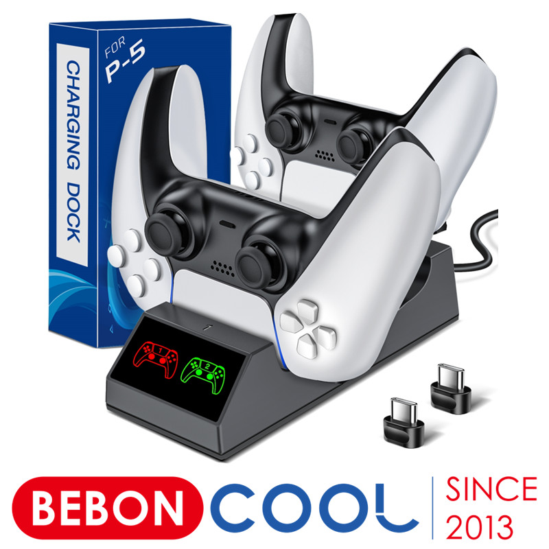This controller for ps5 charging dock can fully charge 2 controllers at the same time 2-3 hours, and the type-c charge cable is included; please use the 5V/2A adapter to power the controller for playstation 5