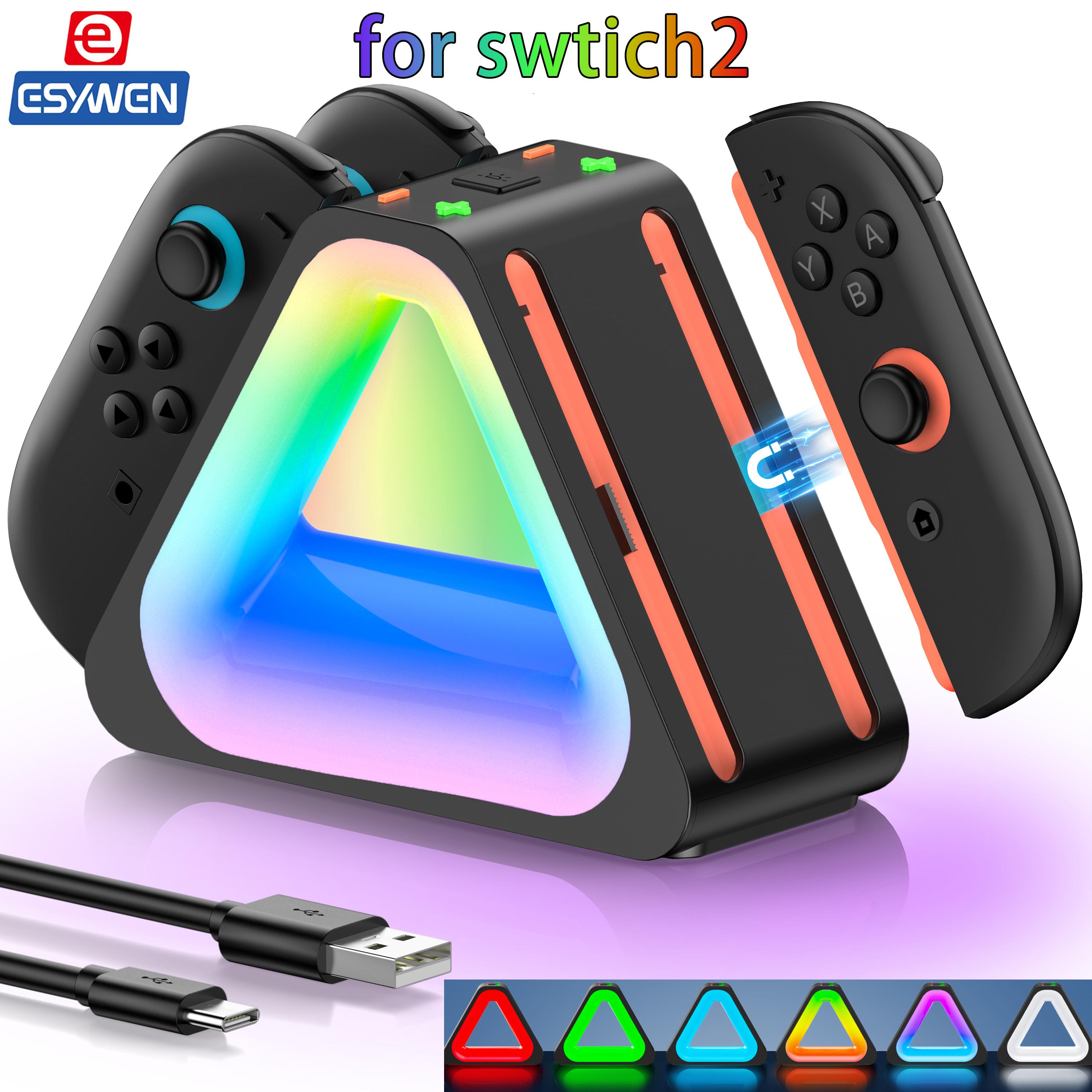 ESYWEN Joy-Con Charging Dock Compatible with Nintendo Switch 2 – Magnetic Fast Charger Station for Switch 2 Joypad & Controllers with Indicators, Smart Protection & Colerfull Lighting