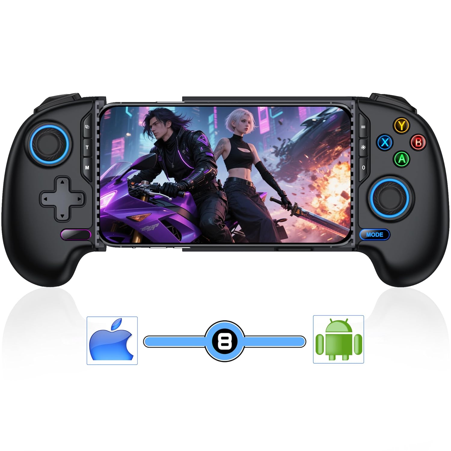Mobile Game Controller for iPhone/Android with Hall Joystick, Wireless Phone Controller with Phone Case Support, Compatible with Xbox Game Pass, Steam Link, Call of Duty, Roblox