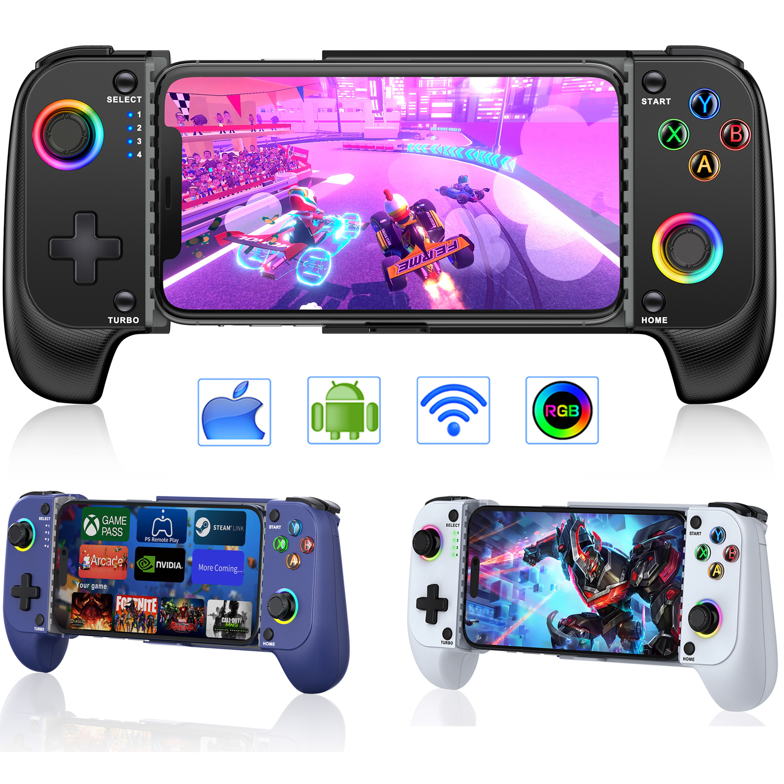 🎁 【WIRELESS IPHONE GAME CONTROLLER WITH RGB & NO DEAD ZONE】 Only hold on 'B+HOME', you can connect controller for iphone with phone via Bluetooth. The phone game controller have Rainbow and 6 single color LED modes, you can switch LED colors or modes to build your own exclusive gaming ambiance! The Hall effect joystick provide ultra precise control, No drift, No deadzone! It helps you gain dominant position of games faster and the performance and game experience has been improved qualitatively!