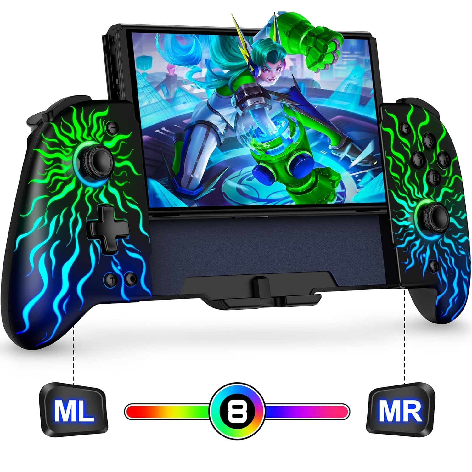 Mocagen Handheld Switch Controllers for Nintendo Switch/OLED Games, Swtich Pro Controller with Marco Buttons/Hall Effect Joystick & Trigger/Big Grip/RGB/Turbo