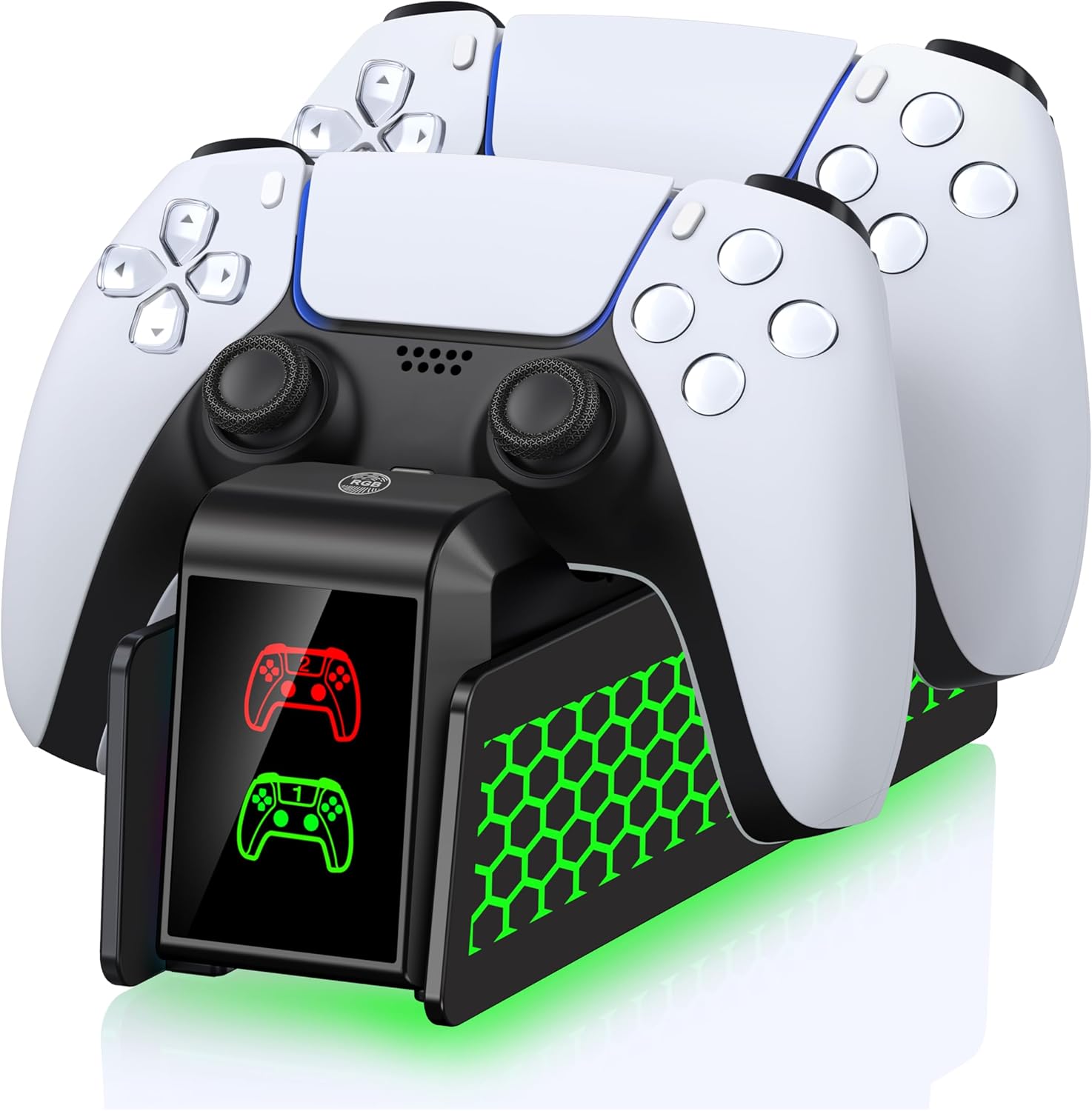 PS5 Controller Charger Station with Cool Lighting, Charging Dock for PlayStation 5 DualSense & Edge Controllers, PS5 Accessories Charging Stand with LED Indicator, Black