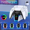 - 【PS5 controller charging station with cool RGB】The ps5 charger have RGB switch and 3 adjustable LED modes: Flash Light Mode; Breathing Light Mode; Solid Blue Color Mode; Off Mode. TIPS:Support intelligent memory of the last power-off RGB light mode!