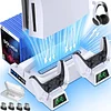 - What you get-PS5 cooling stand includes a ps5 stand, 4 dongles for controller charging and a screw for fixing the console and stand.