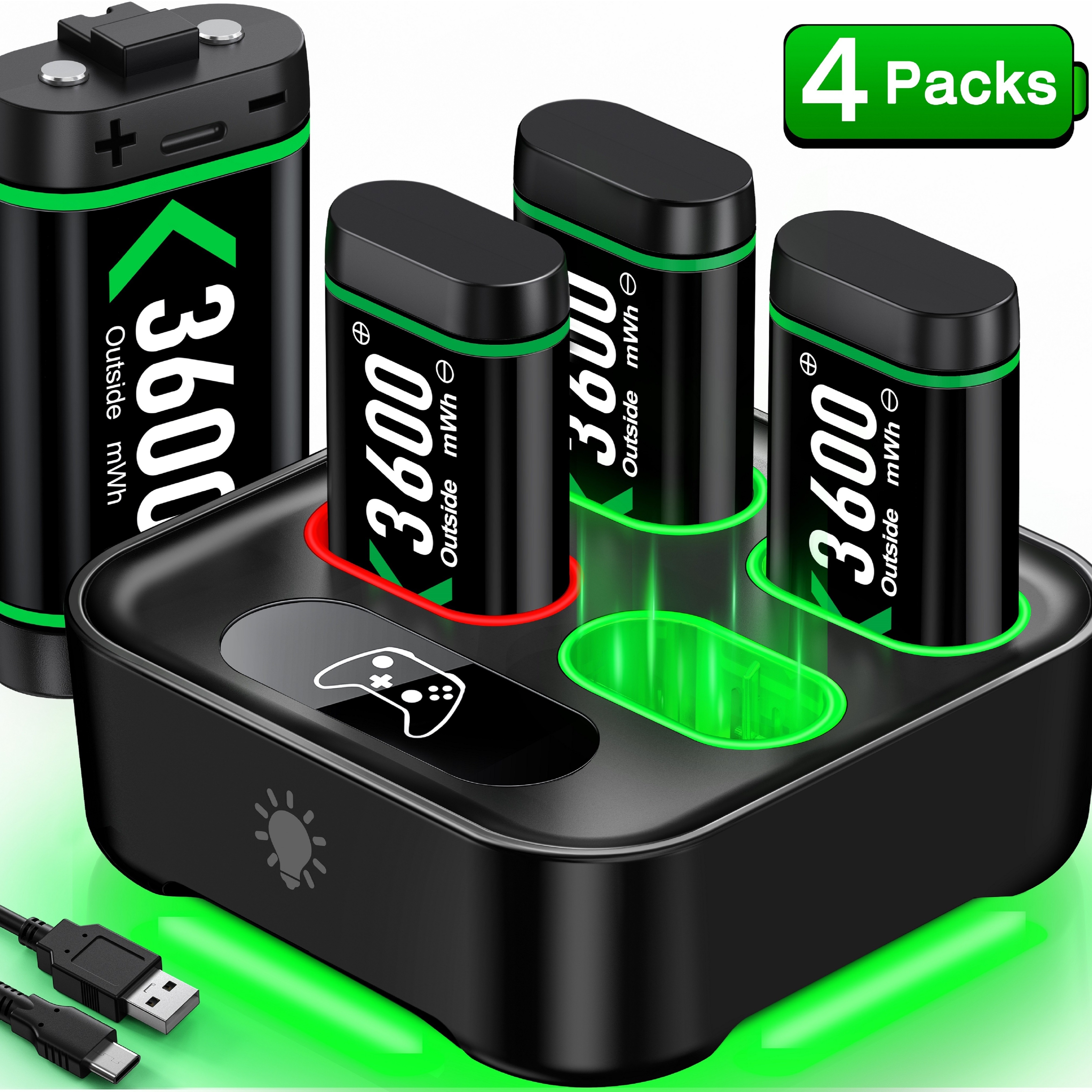 RGB-4 X 3600mWh Rechargeable Battery Packs for Xbox Series X/S/Xbox One/S/X/Elite