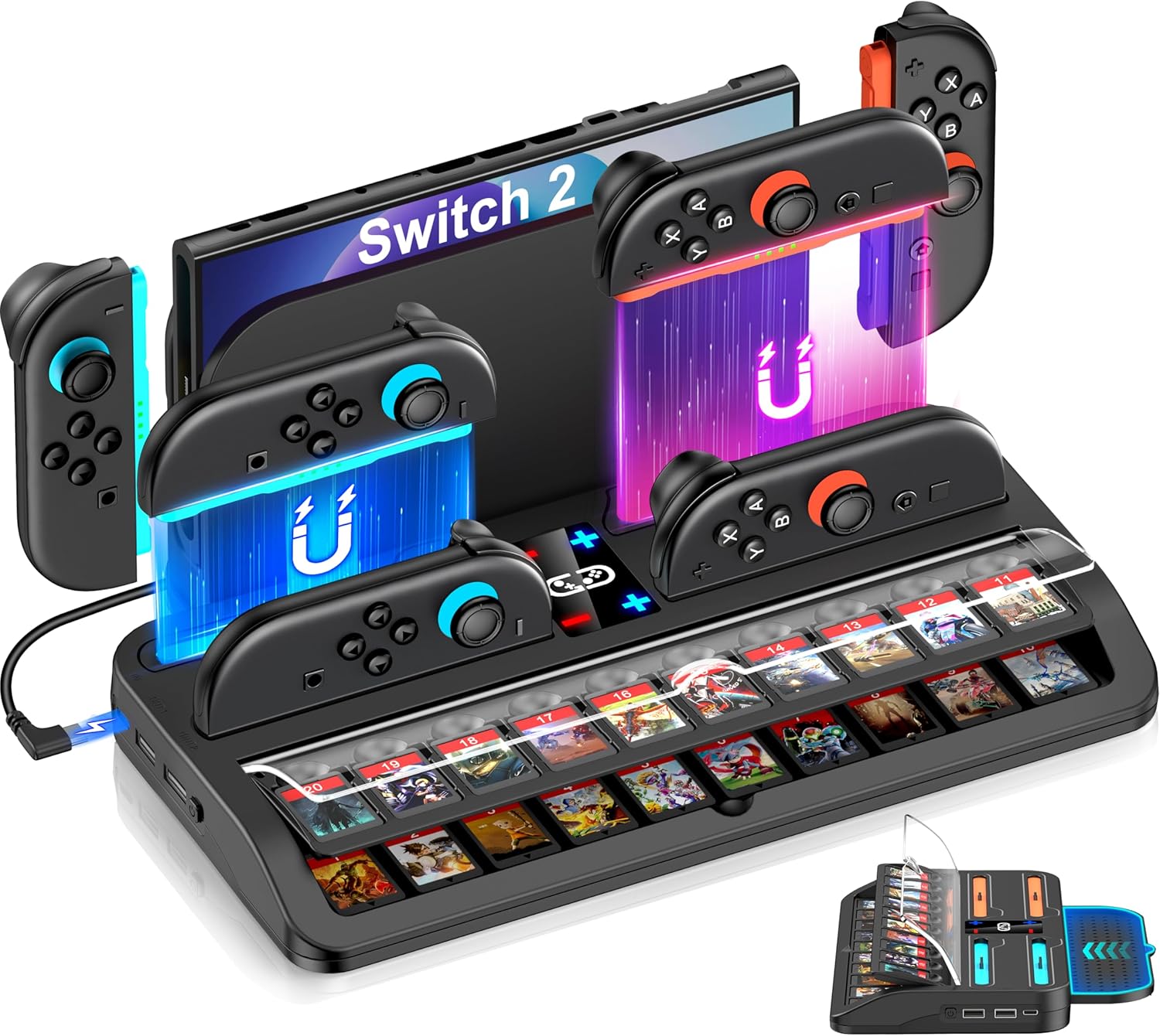 Optimiza tu estación de juego con la base de carga y almacenamiento NinABXY, una solución todo en uno de primera calidad diseñada para los entusiastas de Nintendo Switch 2. Esta versátil base combina perfectamente la carga Joy-Con de 4 puertos, almacenamiento de tarjetas de 20 juegos y funcionalidad de visualización de consola, todo en un diseño elegante que ahorra espacio. Perfecto para maratones multijugador, juegos competitivos o juegos casuales, es el accesorio esencial para mantener tu equipo organizado, cargado y listo para la acción.
