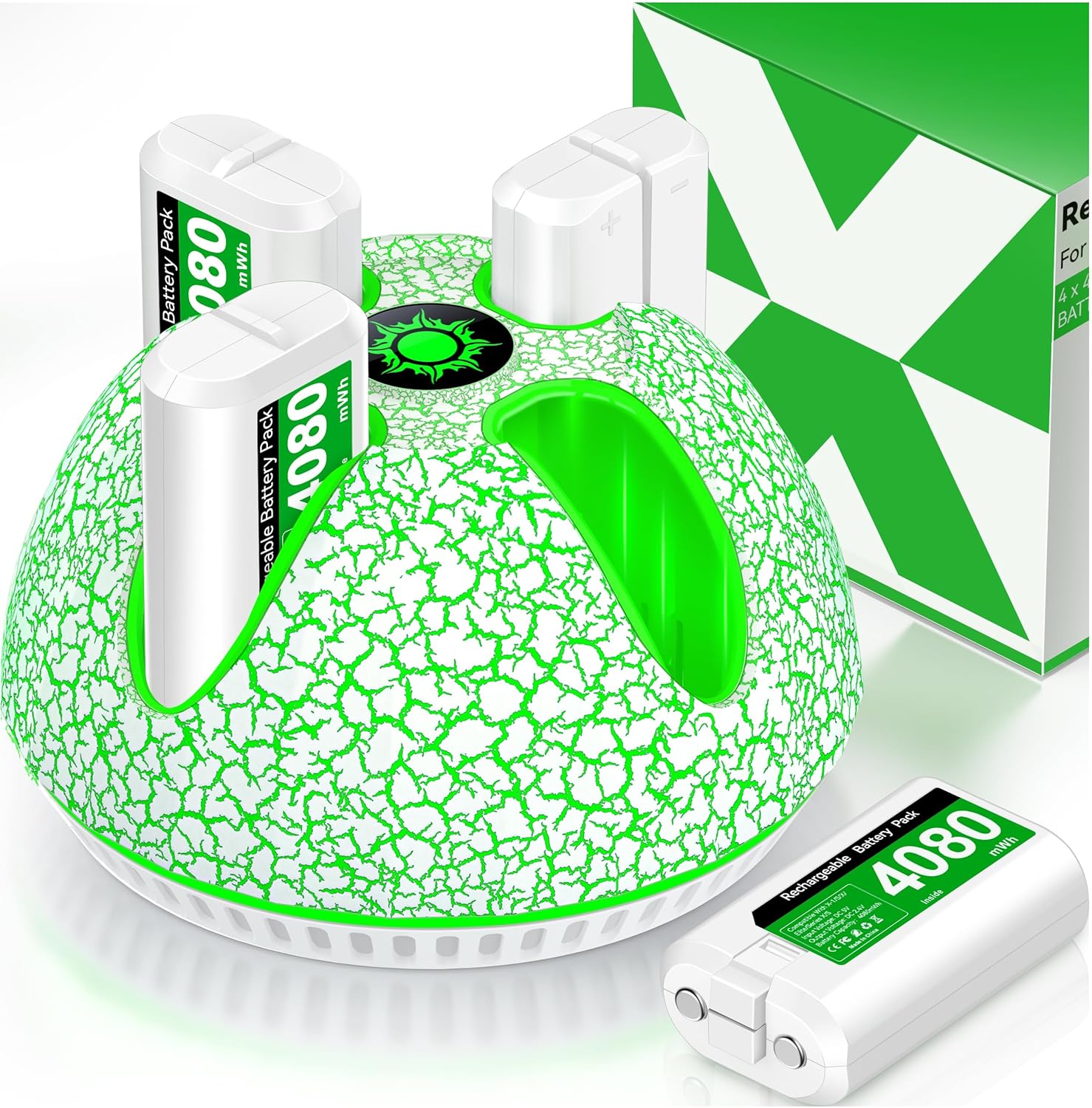 Xbox Controller Battery Pack Charger with Rechargeable Xbox Series X S Battery 4 x 4080mWh, Xbox Accessories Charging Kit for Xbox One Series X/S/Xbox One/X/S/Elite -White