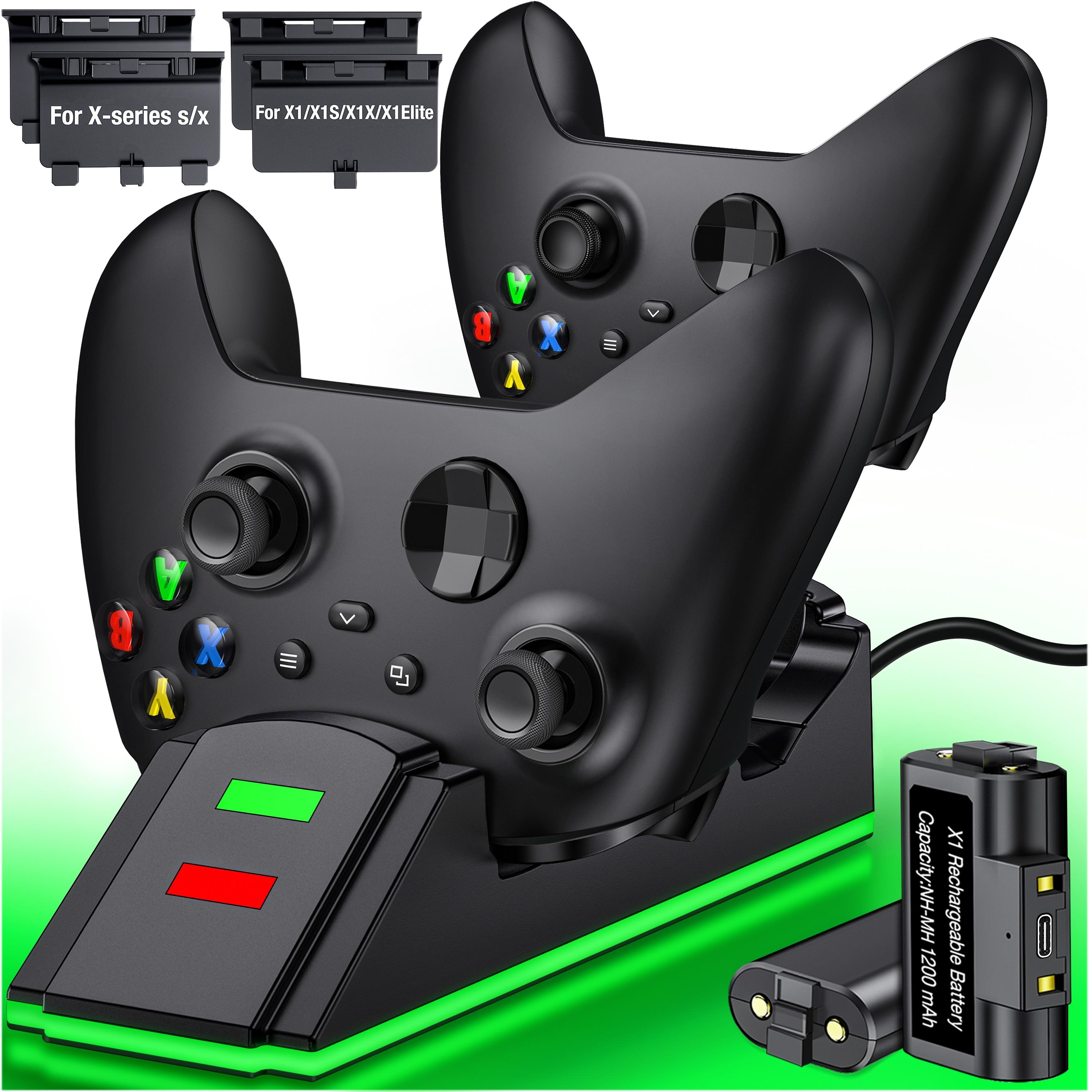 Xbox Controller Charger Station with 2 Packs 3600mWh Rechargeable Battery for Xbox Series X/S/One/Elite Controller, Dual Charging Dock with Cool Dynamic Light, 4 Packs Covers